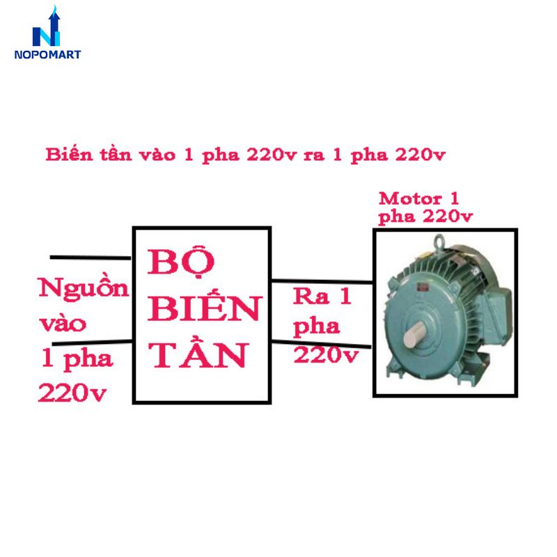 Một điểm cần lưu ý là cấu tạo của motor 1 pha thường có cuộn đề và cuộn chạy. Biến tần tại NOPOMART được lập trình để xử lý dòng khởi động gấp 3 đến 5 lần dòng định mức, giúp động cơ vượt qua quán tính ban đầu mà không gây lỗi quá dòng (OC). Điều này cực kỳ quan trọng đối với các loại máy bơm nước hoặc máy nén khí thường xuyên phải khởi động dưới tải.