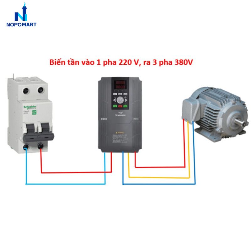 Biến tần 1 pha 220v ra 3 pha 380v mang lại sự tiện lợi tuyệt vời cho các hộ kinh doanh muốn vận hành máy móc công suất lớn tại khu vực không có điện 3 pha nhờ sự hỗ trợ của NOPOMART. Thiết bị chuyển đổi dòng điện thông minh này giúp bạn tiết kiệm chi phí lắp đặt lưới điện mới và tối ưu hóa hiệu suất bộ biến đổi tần số đa năng.