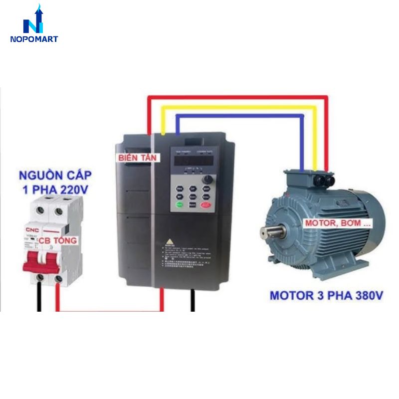 Biến tần 1 pha ra 3 pha 10kw là thiết bị chuyển đổi điện năng thông minh giúp vận hành máy móc công nghiệp tại những nơi chỉ có lưới điện dân dụng từ NOPOMART. Sản phẩm này cung cấp nguồn năng lượng ổn định, bảo vệ động cơ vượt trội và là phương án tối ưu cho hệ thống truyền động xoay chiều hiệu suất cao.