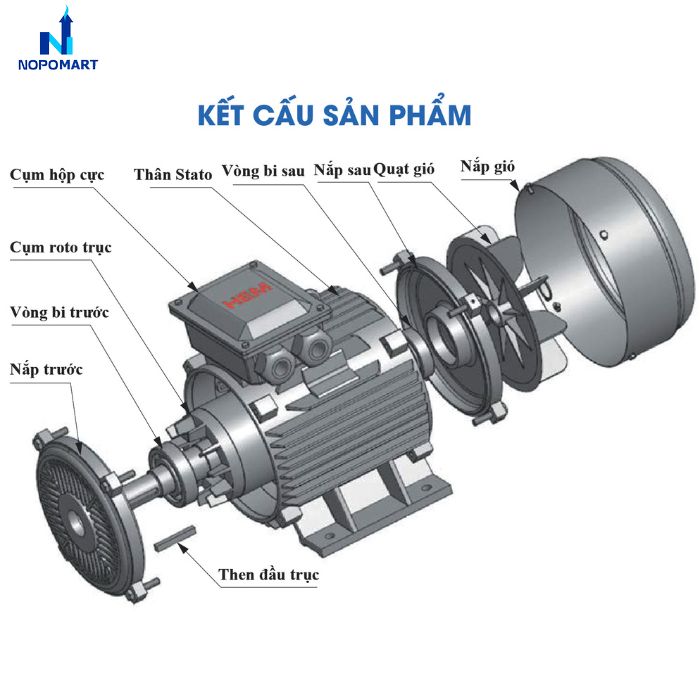 Kết cấu cơ bản của 1 thiết bị động cơ điện 3 pha 132KW