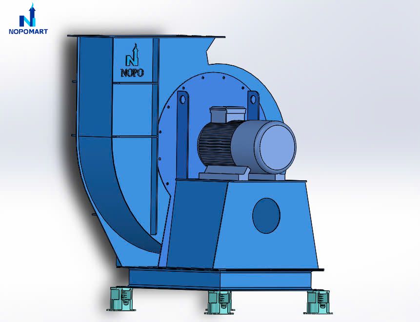 Quạt ly tâm thấp áp thường có lưu lượng gió cực lớn nhưng cột áp thấp, phù hợp cho việc thông gió, làm mát nhà xưởng hoặc hút mùi tầng hầm. Trong khi đó, Quạt ly tâm trung áp là dòng sản phẩm đa năng nhất, thường được dùng để hút khói bếp, hút khí nóng lò hơi nồng độ bụi thấp. Đây là phân khúc chiếm 70 phần trăm sản lượng tại NOPOMART nhờ sự cân bằng hoàn hảo giữa hiệu suất và chi phí đầu tư.