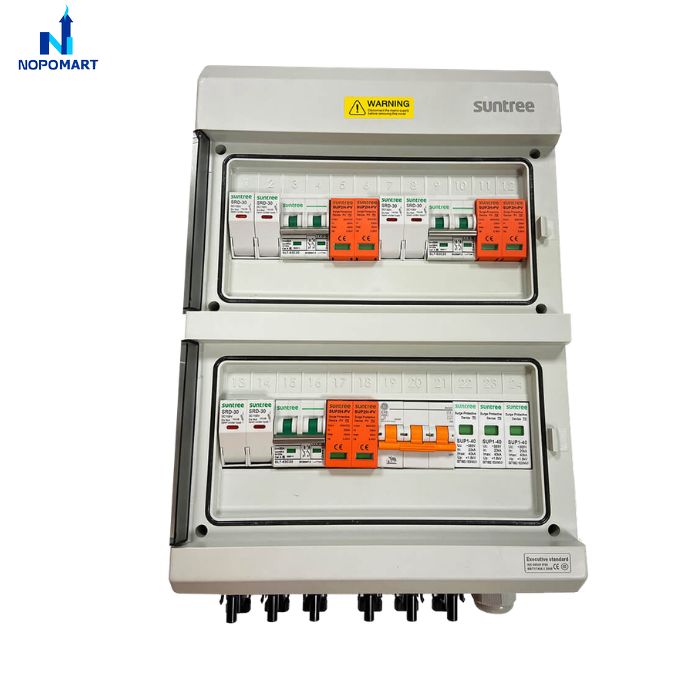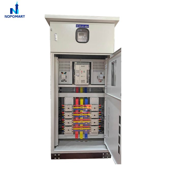 Một bộ tủ điện Solar hoàn chỉnh tại NOPOMART được cấu thành từ hai phân khu chức năng chính là phía một chiều DC và phía xoay chiều AC. Sự kết hợp này giúp quản lý dòng năng lượng từ lúc thu nhận ở tấm pin cho đến khi hòa vào lưới điện gia đình một cách khoa học. Đối với các công trình công nghiệp, tủ này sẽ được kết nối tiếp nối với các hệ thống như Tủ điện phân phối DB để cấp nguồn cho từng khu vực sản xuất.